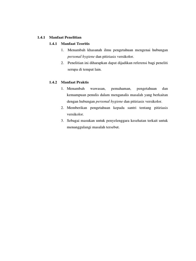 Manfaat penelitian ini terbagi atas manfaat teoritis dan manfaat praktis : Commit to user 25 3. Contoh manfaat penelitian makalah, proposal dan skripsi. Manfaat dari penelitian ini ada dua macam, yaitu manfaat secara teoritis dan manfaat secara praktis. Bagaimana apresiasi guru sejarah terhadap novel "jalan raya pos jalan daendels" sebagai bahan pendamping sumber pembelajaran sejarah. Dalam penelitian, manfaat dibagi menjadi 2 yaitu manfaat teoritis dan manfaat praktis: Manfaat teoritis, berlatar dari tujuan penelitian . Contoh manfaat penelitian serta penulisan karya ilmiah,skripsi, makalah, pendidikan serta pengertian, tujuan manfaat penelitian bagi . Q ditinjau dari manfaat teoritis dan manfaat praktis. Bagaimana cara membuat atau menyusun manfaat penelitian untuk karya tulis ilmiah, skripsi maupun tesis? Manfaat penelitian ini dapat di klasifikasikan menjadi dua manfaat, yaitu, manfaat teoritis dan manfaat praktis. Secara teoritis, penelitian ini diharapkan dapat menambah pengetahuan tentang metode penelitian analisis isi . Penelitian ini bertujuan untuk mengetahui pengaruh perubahan kredit terhadap kinerja perbankan.